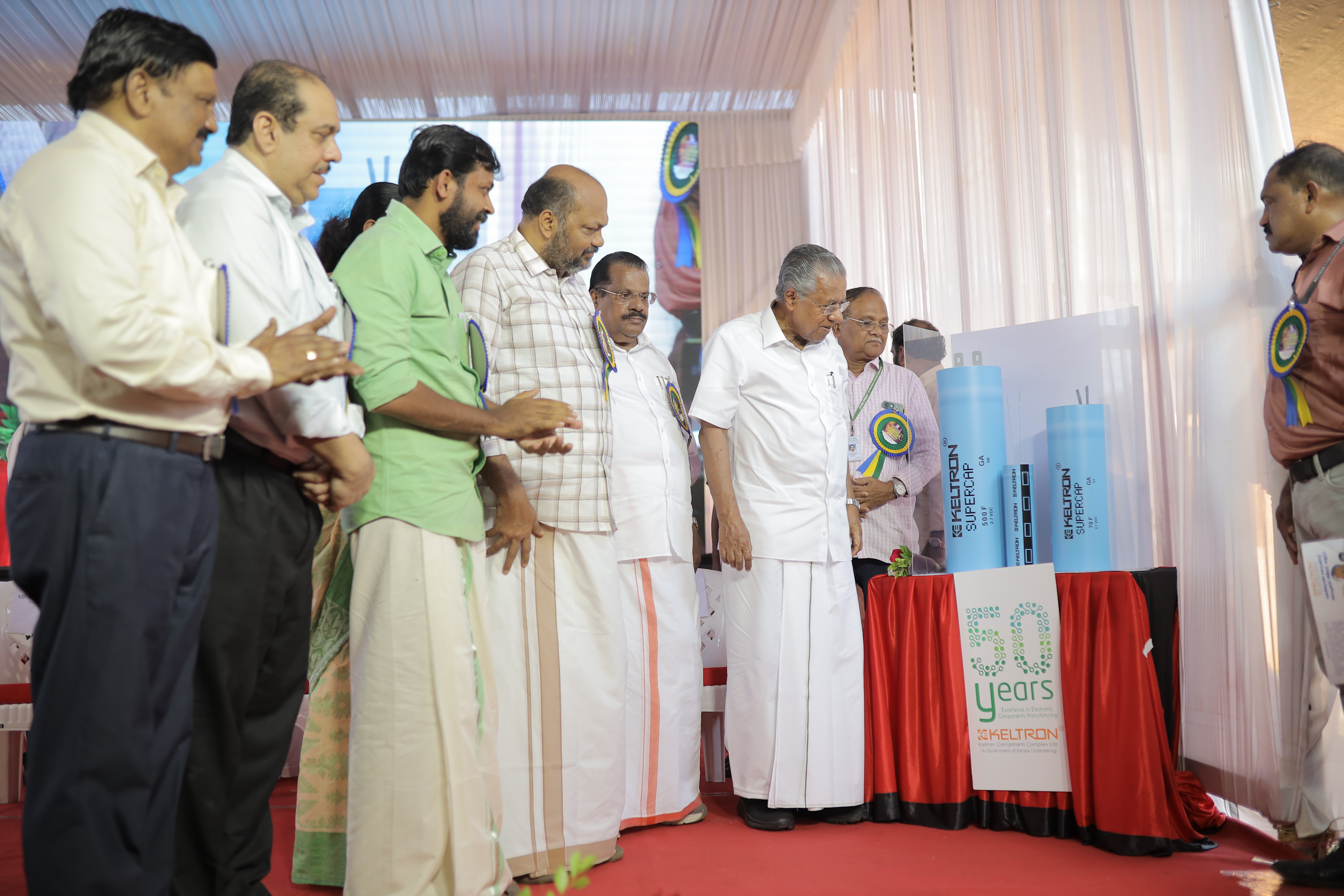 Honourable Chief Minister of Kerala, Sri. Pinarayi Vijayan inaugurated the landmark event for India’s electronics manufacturing sector's first Supercapacitor Production Facility at Keltron Component Complex Limited (KCCL) in Kannur. Hon. Minister for Industry, Law & Coir Shri. P. Rajeev presided over the function. Shri. M. Vijin, MLA of Kalliasseri, extended a warm welcome to the attendees, setting the tone for the event and highlighting India’s growing capability in advanced electronics manufacturing. Shri. A.P.M. Muhammed Hanish, Principal Secretary (Industries), Govt. of Kerala took the stage to present the detailed project report, outlining the goals and impact of this pioneering facility.
